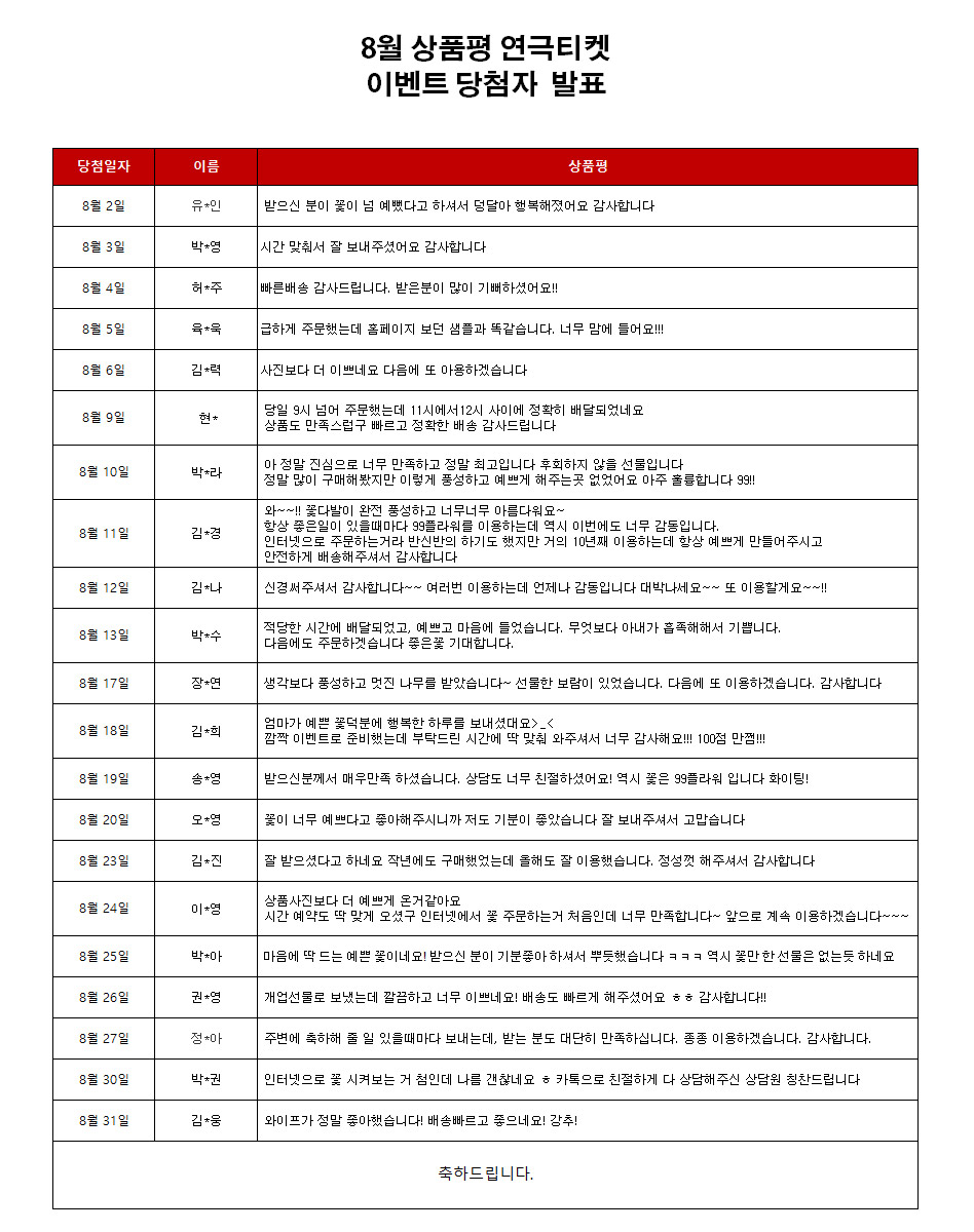 title : 2021³â 8¿ù »óǰÆò ¿¬±ØÆ¼ÄÏ À̺¥Æ® [´ç÷ÀÚ¹ßÇ¥]