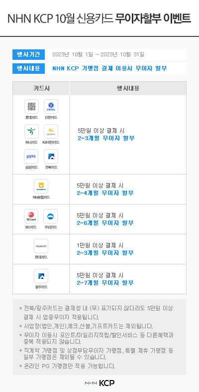 title : 2023년 10월 무이자 할부안내 [ KCP / PAYCO ]