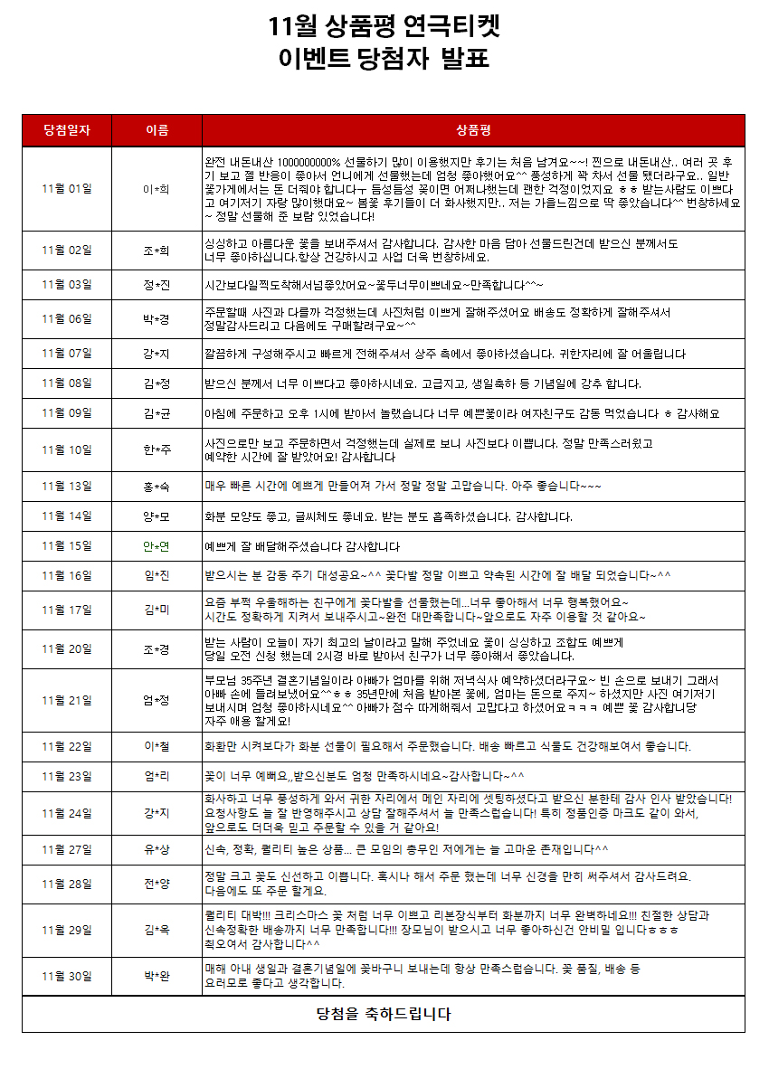 title : 2023³â 11¿ù »óǰÆò ¿¬±ØÆ¼ÄÏ À̺¥Æ® [´ç÷ÀÚ ¹ßÇ¥]